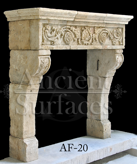 An old limestone mantle can either be minimalist and simple or elaborate and rich in carved details.